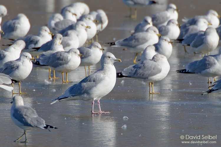 Location: Kansas River, Kansas, USA| Description: Kumlien's race (L. g. kumlieni) with Ring-billed Gulls (Larus delawarensis) |