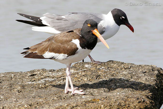 American Oystercatcher (with Laughing Gull)